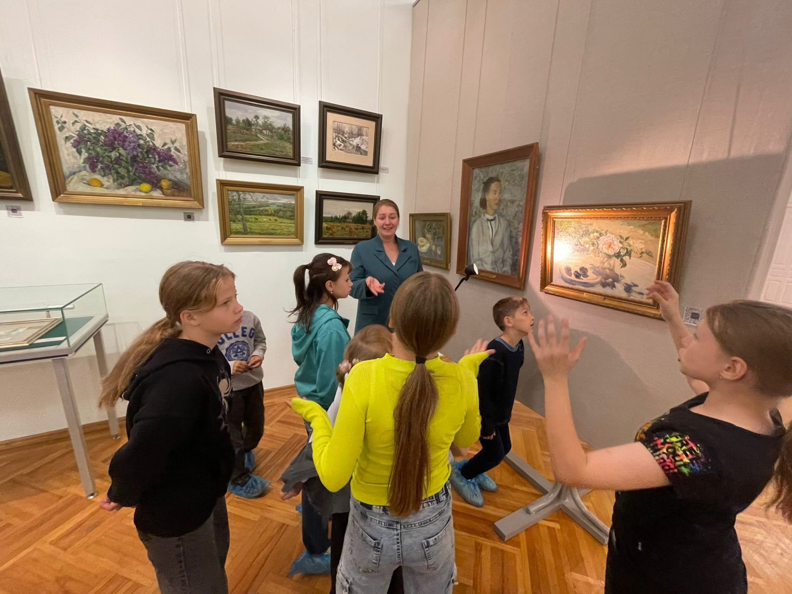 Дети смогли насладиться красотой цветочных и фруктовых натюрмортов художника, а также редкими для современного искусства - охотничьими натюрмортами. Также были представлены пейзажи Гумилевского, которые переносят зрителя в Подмосковье, где автор провёл своё детство и увлёкся рисованием.