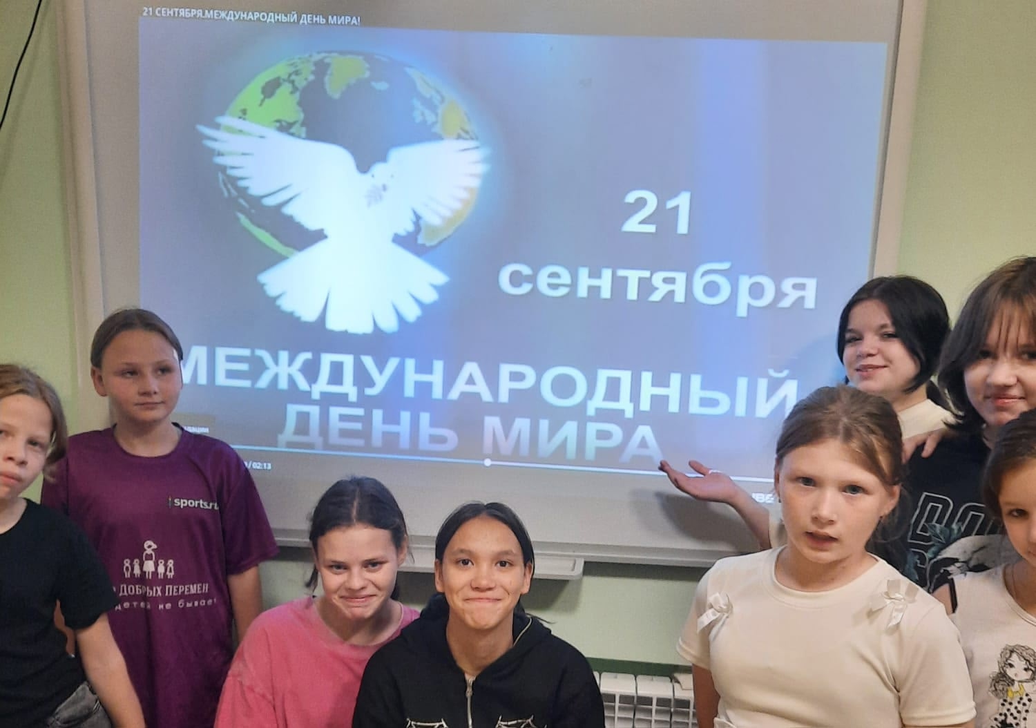 У воспитанников стационарного отделения социальной реабилитации несовершеннолетних состоялось тематическое мероприятие, посвящённое Дню мира. Дети посмотрели видеоматериалы о мирном сосуществовании жителей планеты Земля, узнали, что символом праздника является изображение голубя, несущего в клюве оливковую ветвь. Его автор — известный испанский художник Пабло Пикассо.