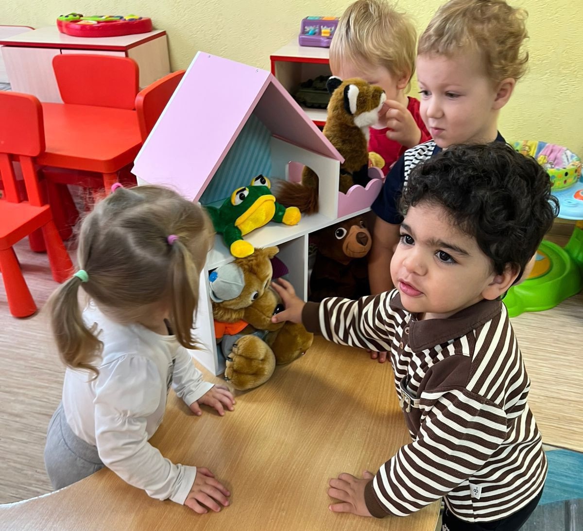 Одним из средств развития нравственной, эмоциональной, культурной сфер являются театрализованные игры. Малыши очень любят смотреть сказочные спектакли, но ещё больше им нравится в них участвовать. Вот и сегодня маленькие воспитанники стационарного отделения социальной реабилитации несовершеннолетних вспомнили всеми любимую русскую народную сказку «Теремок» и с помощью игрушек обыграли её. Ребята совершенно недолго грустили, когда Мишка случайно разломал домик зверят: во-первых, всем вместе и дружно очень легко заново его отстроить, а во-вторых, детишки быстро отыскали замену старому теремку. Новый домик оказался не только очень симпатичным, но и крепким!