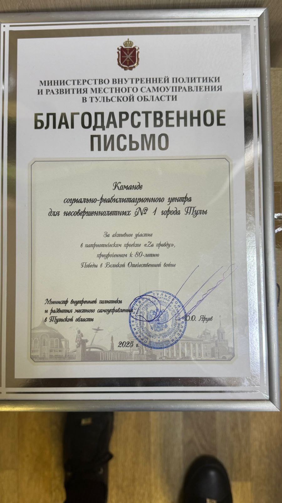 Команда нашего учреждения получила благодарственное письмо за активное участие в патриотическом проекте, приуроченном к 80-летию Победы в Великой Отечественной войне!