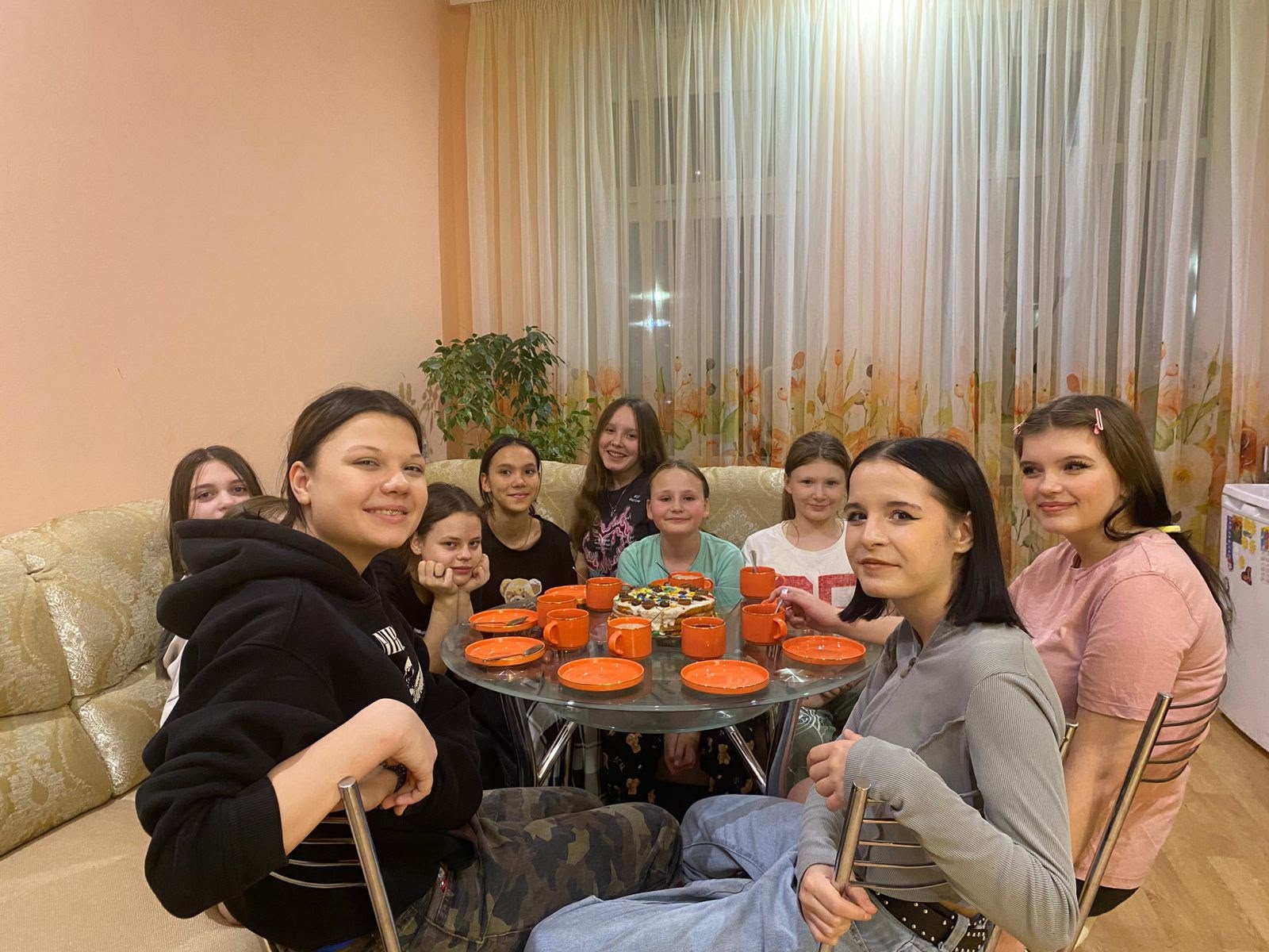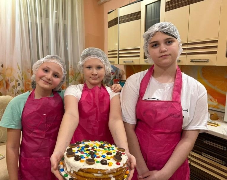 После прогулки воспитанницы под наблюдением педагога учились готовить торт из бисквитных коржей, сделали очень вкусный крем, украсили оригинальными топперами, все вместе устроили чаепитие.