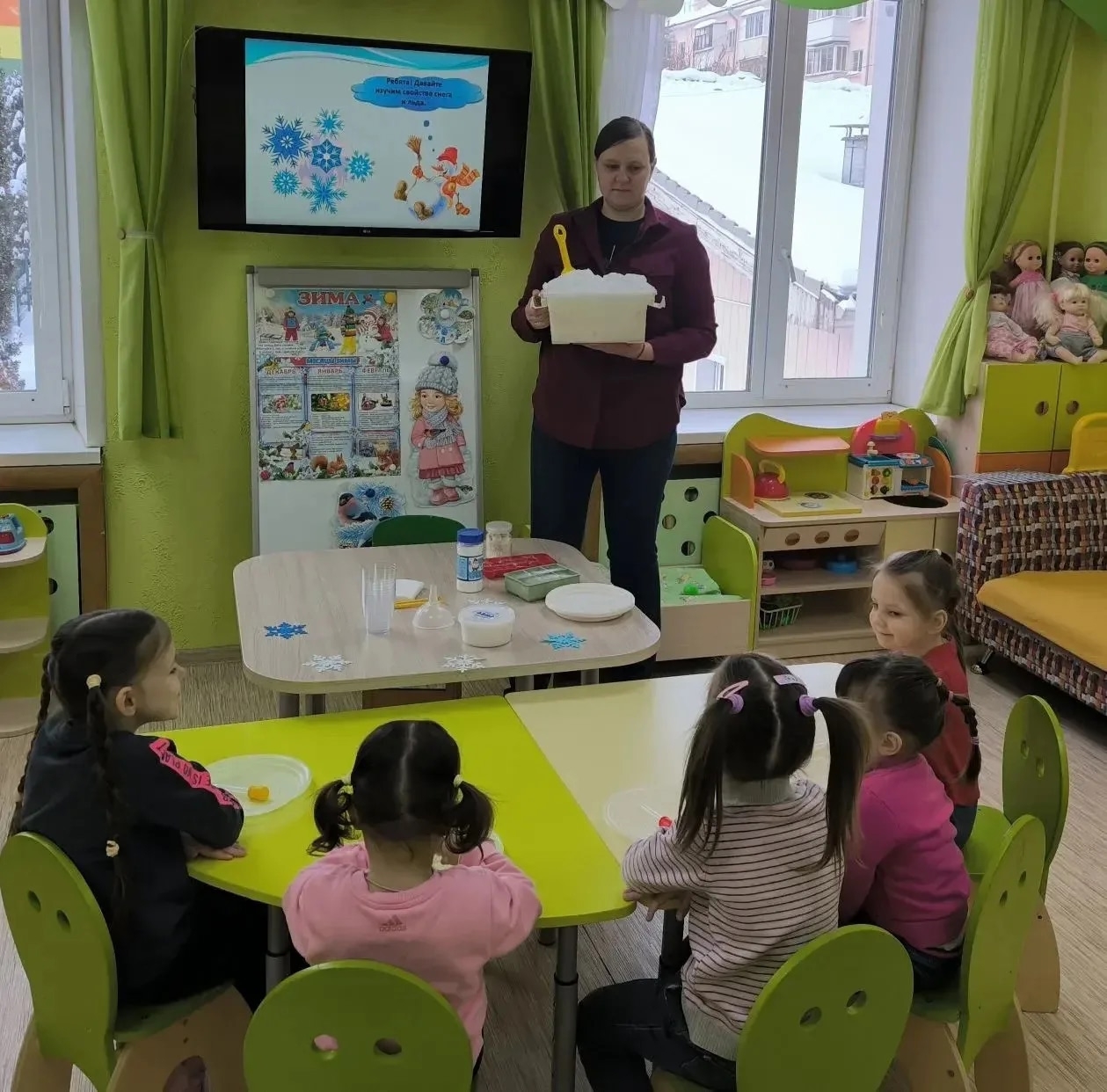 Младшие воспитанники стационарного отделения социальной реабилитации несовершеннолетних через игру и опыты узнали массу важного: почему снег белый, а лед прозрачный, как лёд тает быстрее, с помощью чего можно рисовать на снегу.